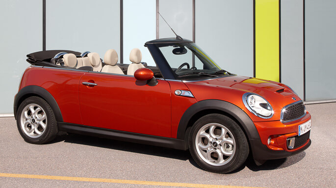 רטרו שיק יוקרתי. למיני קופר קבריולה עיצוב קבריולה קלאסי, כאשר כל גג הבד מתקפל לאחור אל תוך תא המטען. המיני קופר קבריולה, לעומת הגרסה הרגילה, עלתה במשקל לנוכח חיזוקי המרכב - מה שאומר שבגרסת ה-1.6 ליטרים לא תקבלו ביצועים מסעירים. היא עדיין מהנה מאוד לנהיגה, אך גרסת ה-S עם מנוע הטורבו זריזה משמעותית. רמת הנוחות בינונית וגם האבזור סביר בלבד. אם תחרגו מהתקציב, תוכלו למצוא גם את המיני רודסטר - עם יכולות ספורטיביות משופרות.