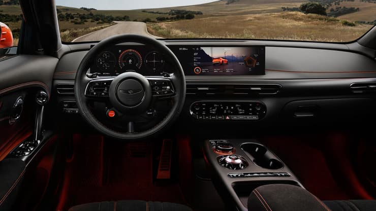 אבל לנו אין את את המרכיב השני. לא; אנחנו יושבים ב-SUV כתומה וחשמלית. אנחנו יושבים ב-GV60, רכב הפנאי החשמלי של ג'נסיס – חטיבת היוקרה של יונדאי. בגדול, זו מכונית לאנשים עם משכורת נאה עם שלושה ילדים ולברדור. אבל כרגע זו מכונית לאנשים עשירים ומיושבים שראו המון פורמולה 1 והחליטו שגם להם מגיע.
