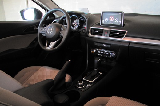 מרווח, שימושיות ונוחות נסיעההמכוניות של מאזדה אינן מפורסמות במרווח הפנים שלהן, וה-3 אינה יוצאת דופן בעניין. תא המטען קטן וגם פשוט, אבל נגיש. הישיבה במכונית נמוכה והמושב האחורי קלסטרופובי וצפוף יחסית לסיאט. תנוחת הישיבה הנמוכה מפריעה בתמרון עירוני - היות שקשה לראות את קצות המרכב. המושבים נוחים ותומכים וגם תנוחת הנהיגה טובה מאוד. בכל רחבי התא ניכר מחסור בתאי אחסון, ומי שמחפש מקום להניח דברים מוצא בעיקר תאים לכוסות ולבקבוקים.