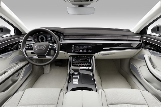 כמקובל בקטגוריה, רשימת האבזור באודי A8 ארוכה במיוחד. נוכל למצוא בה, למשל, לא פחות מארבעה מסכים שונים: לוח המחוונים Virtual Cockpit המוכר של אודי, מסך מרכזי בגודל 10.1 אינץ', מסך משני בגודל 8.6 אינץ' ממנו ניתן לתפעל את בקרת האקלים, מאפייני הנוחות והזנת כתב יד (באנגלית בלבד) לחיפוש תחנות רדיו או כתובת ניווט, וכמובן את התצוגה העילית המוקרנת על השמשה הקדמית.