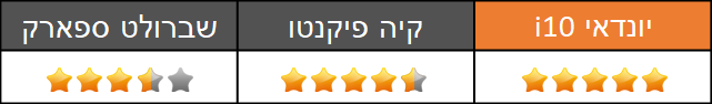 להשוואת נתונים: יונדאי i10 מול קיה פיקנטו ושברולט ספארק