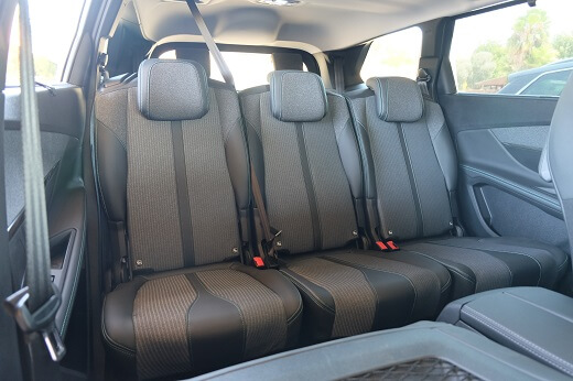 הכניסה והיציאה לשורה השלישית נוחות יחסית, בעיקר בגלל מדרך לרגל במפתן הדלת. מאחור הוא לא המרווח ביותר אבל המרווח לראש מוצלח והמרווח לרגליים טוב מהאאוטלנדר ומעט נופל מה-5008. המושב עצמו הוא הנמוך ביותר.