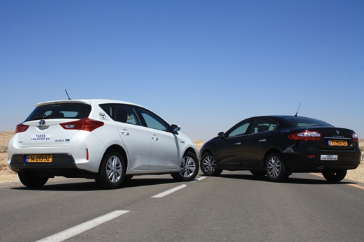דיזל VS היברייד. צריכה נבונהלקחנו שתי מכוניות שמייצגות את התפיסות הללו בכדי לבדוק מה עדיף. לא בדקנו רכבים כללים, אלא בחרנו בשתי המכוניות שבדרך כלל רוב האנשים מתלבטים ביניהן. טויוטה אוריס הייבריד היא כמעט הברירה היחידה בעבור מי שרוצה לנסוע הרבה ברכב היברידי. היא זולה בכ-20 אלף שקל מהפריוס, וביחס ליאריס ההיברידית היא מרווחת ומתאימה יותר לנסיעות ארוכות. הפלואנס דיזל היא לא הברירה היחידה; באותה מידה ניתן לבחור בגרסאות ההאצ'בק והסטיישן של רנו מגאן, שמציעות את אותה תיבת הילוכים ואת אותו המנוע. בין הרכבים יש פערים אלו ואחרים אך הפלואנס דיזל היא הותיקה בישראל ולכן המוכרת ביותר לקהל הישראלי, ולכן היא זו שהתייצבה למבחן.