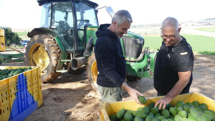 אה כן, מסתבר שזה מה שקוטפים כאן עכשיו. למעשה, העגלה שאני מנסה לנווט מאחורי הטרקטור נבנתה כך שהיא תוכל להוביל בכל פעם שלושה דולבים מלאים באבוקדו. תראו מה זה, עם הרוורס עדיין קשה לי, אבל איזה יופי כבר מתגלגלות ממני מילים חקלאיות כמו דולבים.
