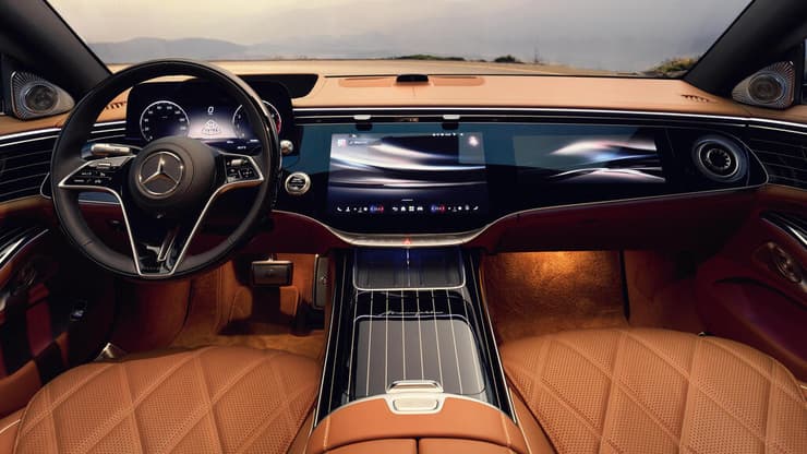סביבת הנהג עדכנית עם מסך מגע מרכזי ("14.4) ואחד נוסף לנוסע ("12.3), בעוד ליושבים מאחור צמד מסכים ("13.1) בגב המושבים הקדמיים. מאחור יש מקום לשני נוסעים, עם הדום לרגליים וכריות, שולחנות מתקפלים ומקרר (9.6 ליטר) ייעודי.