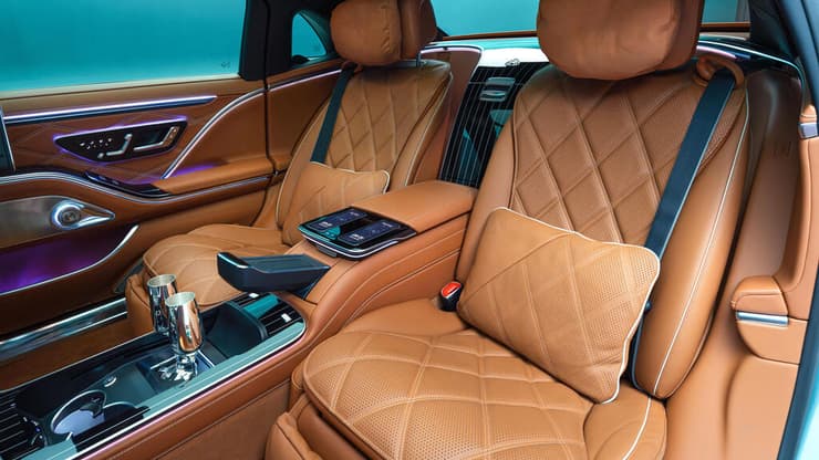 אפשר גם להוסיף צמד גביעי שמפניה ייעודיים מכסף (38 אלף שקל), או מערכת שמע עם 31 רמקולים בתא (66 אלף שקל), ואפשר גם לבחור בצביעת מרכב דו-גונית במחיר של משפחתית חדשה (165 אלף שקל). כל מערכות הבטיחות האקטיביות המוכרות מה-S קלאס הרגילה נוכחות, אבל עם 14 כריות אוויר (לעומת 10), כולל בגב המושבים הקדמיים עבור הנוסעים מאחור.