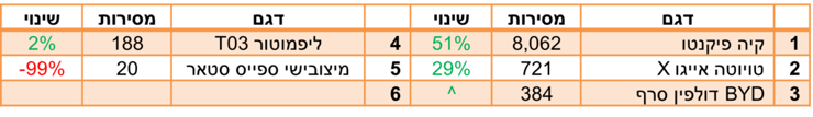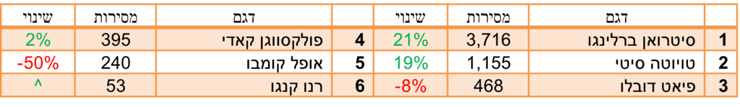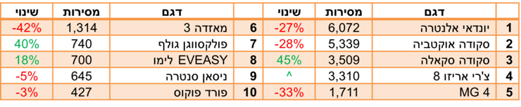מי שניצלו את המצב הן השחקניות הוותיקות שלוגמות בנזין - יונדאי סונטה, סקודה סופרב וטויוטה קאמרי, שרשמו כולן עליה במכירות.