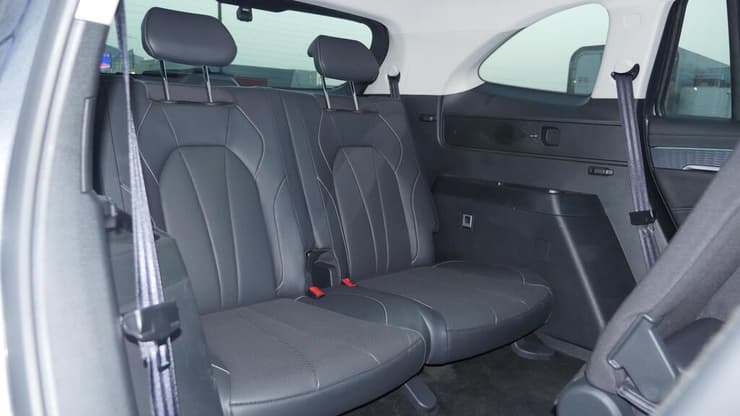 הכניסה לשורה השלישית נוחה יחסית, בזכות מתג חשמלי שמאפשר הזזה קלה של המושב הימני בשורה השניה. המושבים מאחור נמוכים כמקובל, אך המרווח שם מפתיע לטובה ויתאים אפילו לנוסעים בוגרים, גם אם לא בנוחות מירבית. וגם שם יש פתחי מיזוג, מחזיקי כוסות ושקע USB. מרשים.