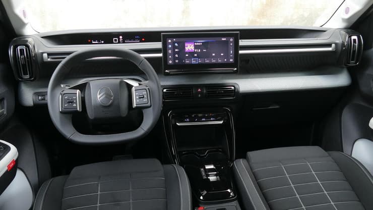 סביבת הנהג פחות מוצלחת לטעמנו. כן, יש חומרים איכותיים כמו דיפונים דמויי עור בדלתות (עם תוויות של איחולים כמו "be cool" ,"be happy ,"have fun" ו-"feel good" בכתום), לצד חיפוי בד על הקונסולה הקדמית. נחמד, אבל הם לא מסתירים פלסטיק פשוט, מחוספס ושחור. לוח מחוונים דיגיטלי ("7) ממוקם מעל הגה קטן-קוטר, בדומה - התעקשות ממש מוזרה של הקונצרן - לפיג'ו, עם תצוגת ברורה אך ללא מחוון סל"ד.