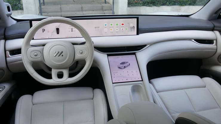 סביבת הנהג עדכנית ללא מתגים כלל, למעט שתי גלגלות קטנות על ההגה, אבל הרבה מסכים. אחד גדול ("26.3) המשמש כלוח מחוונים (עם תצוגת משתמשי דרך מיותרת) ולמערכת הבידור, ובקונסולה המרכזית מסך מגע נוסף ("10.5) האחראי על תפעול מערכות, לצערנו כולל כיוון מראות וכיוון זרימת האוויר מהפתחים.