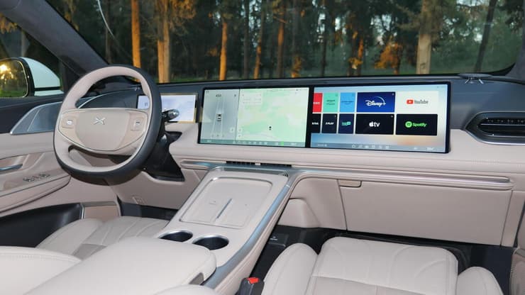 מה דומה: סביבת הנהג באקספנג G9 היתה ונותרה מהמרשימות ביותר מבחינה טכנולוגית שפגשנו. יש לוח מחוונים דיגיטלי ("10.25) ושני מסכי "15 עצומים, האחד מסך מגע מרכזי עבור מערכות הרכב, השני עבור הנוסע מלפנים, מסך שיכול לשמש גם לצפיה של תכני וידאו באמצעות יוטיוב, נטפליקס ואפליקציות אחרות.
