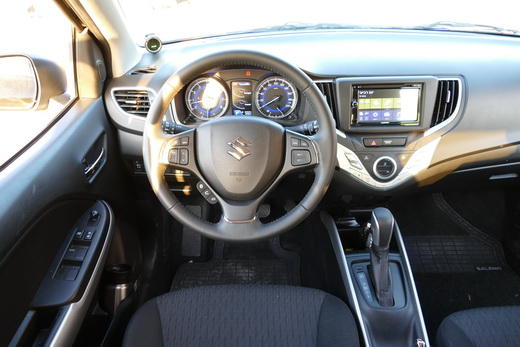 המושבים ותנוחת הנהיגה בבאלנו מתאימים לבעלי גוף קטן עד בינוני; הגבוהים שבינינו יתקשו למצוא עמדת שליטה טובה, וגם מבנה המושב יביא לתמיכה לא מושלמת בגב. ברמת הגימור GLX ההגה יוצא פנימה והחוצה, דבר שמקל על מציאת תנוחת נהיגה טובה.